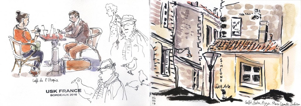 Ce week end, c’était la 4ème rencontre nationale Urban Sketchers France. Pas d’excuse de louper l’évènement, ça se passait à Bordeaux. C’est un mouvement de croqueurs de rues qui organise de temps en temps des rassemblements pour faire du dessin une activité un peu plus sociale.